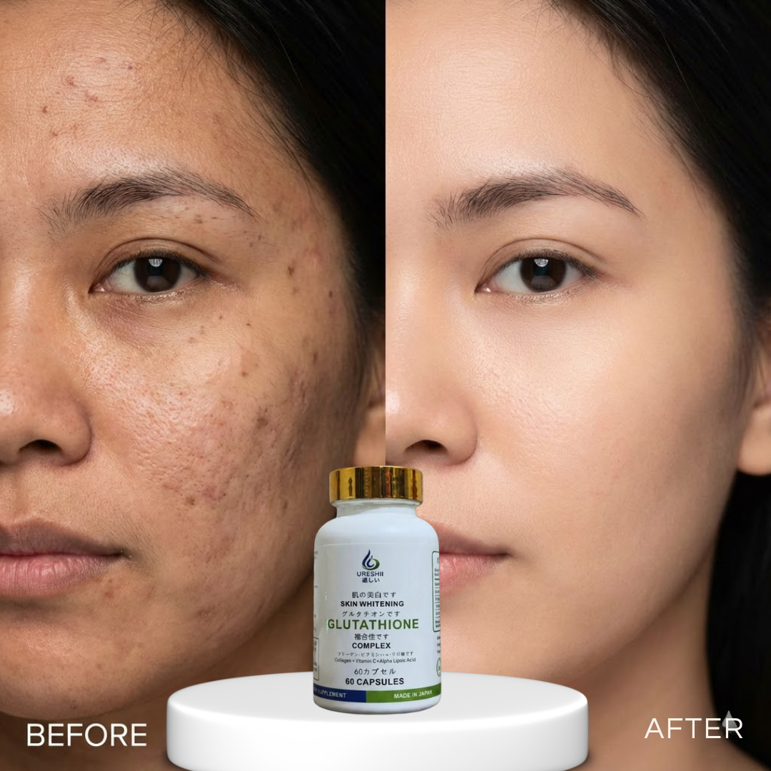 Uresehii Glutathione Complex: Fades dark spots, evens skin tone & boosts radiance—see visible skin transformation in just a few weeks!